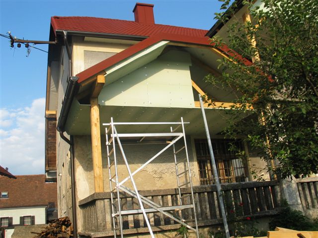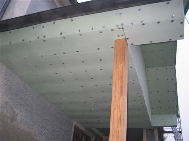 Suhomontažna izvedba napuščev s kovinsko podkonstrukcijo, na katero se privijačijo vlagoodbojni materiali (styrodur plošče, vlagoodbojne mavčne plošče..)